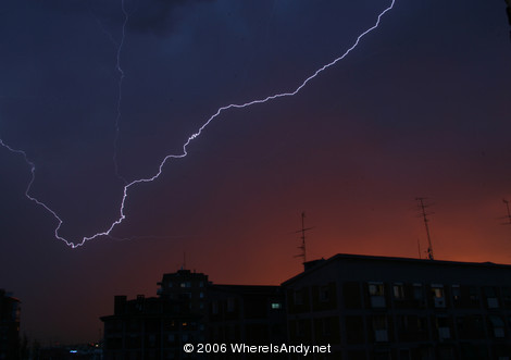 Seeing lightening flash across the skies, I couldn’t resist trying to get some pics with lightening forks in them. This is something I’ve been wanting to do ever since seeing some spectacular storms in Austria as a kid.