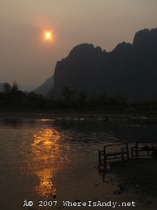 Vang Viang is a real backpacker hang out. Loads of bars serving Italian, Israeli, British and Thai food of varying standards and offering a choice of films (all pirated with terrible attempts at subtitles. For example Take “when I went to Hollywood there were no block busters” subtitled as “when I went to Hollywood there were no black bastards”. Several bars went further by only showing one series all the time. i.e. Friends or Simpsons.