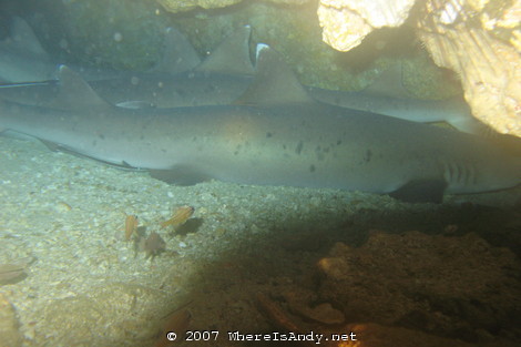 Later in the day we returned to the same dive site. The 20 metre deep shoal has has very deep water all around and very little of interest on the shoal bed. It is however what is known as a cleaning station where small cleaing wrasse fish clean whatever big things come along, be it sharks or divers (thats right, I had a cleaning wrasse nibbling at my wet suit).