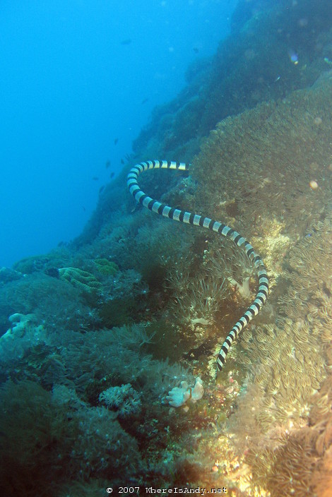 Coming up to shallower depths we were accompanied throughout our safety stop by a banded sea snake. Not only my longest dive to date, but probably my best. I cannot remember ever being so comfortable under the water.