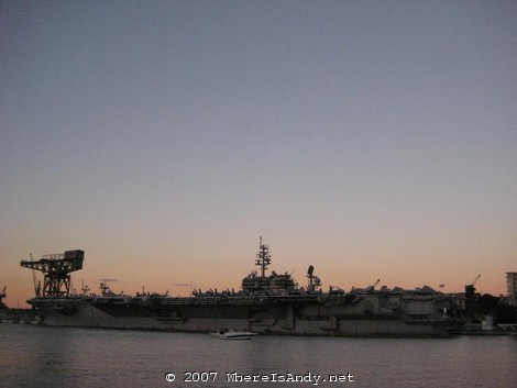 Apparently we were lucky with the weather. Shortly before we arrived they’d had gales and lots of rain. We were blessed with lots of sunshine and blue skies. We managed to see Watsons Bay and Manly after some picturesque ferry trips across the harbour. We viewed the Sydney opera house from many an angle as well as checking out the CBD, The Rocks, several of the parks and a very hip quay of which the name escapes me. Another sight that is not normally synonymous with Sydney was the USS Kitty Hawk, which was in port for a few days. This huge aircraft carrier is apparently only a small pup compared to some of the newer nuclear powered ships. Still looked pretty impressive to me. During the time it was in the harbour the papers claimed an estimated $180 million were spent by the crew… I’ll leave you to figure out on what most of it was spent.