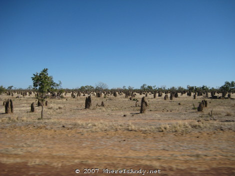 The termite hills in the photo above deserve a mention. We saw thousands of these mounds spread along the side of the road. Often lots of small ones close together giving a grave yard like appearance, but sometimes we were treated to a single huge mound rising over two metres tall. Fascinating story of how they come to be but I can’t bring myself to write it now (it’s 11.15pm, I’ve been up since 5.30, running round like a madman all day and I have a flight to catch tomorrow morning). Next time we’re enjoying a beer, remind me and I’ll fill you in.