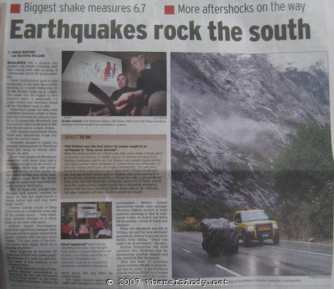 Only an Earthquake! Some of the worlds biggest natural disasters can be attributed to earthquakes. This is nature at its most dangerous. Tectonic plates jostling for position. The stuff that mountains are made from. Our quake measured 6.7 on the Richter scale, which although small compared to the quakes that hit the headlines, believe me was certainly strong enough. Very few people slept through this, close to the epicentre huge boulders were dislodged from mountains and according to insurance claims over $100,000 worth of damage was done.