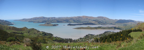 The Menzies live on the Banks Peninsular just south of Christchurch in a place called, check this out, Menzies bay. The Banks Peninsular is yet another beautiful part of the country, once again mountainous with huge inlets and bays which is actually a result of a huge volcano that has been eroded away of several million years. Something that becomes quite clear from aerial photos. There is a stunning summit road that winds its way along the ridge of the crater affording wonderful views. An added bonus for us was that as we were headed to visit relatives we took some routes that other tourists normally wouldn’t bother with. Every few minutes I was muttering “wow”, “check that out” etc in awe of the countryside unfolding in front of us.