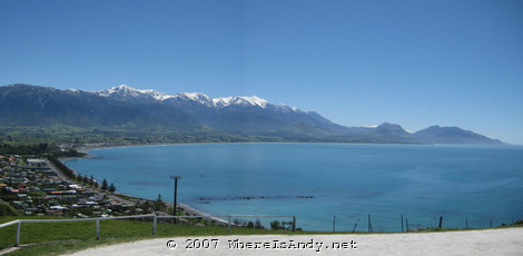 With our South Island trip coming to an end we played a flying visit to Kaikora. New Zealand’s Whale Watching capital. The daily visits from Whales are attributed to a deep channel over 1km deep within 1km of the shore at Kaikora. The whole whale watching circus here seemed very commercial and we’d heard mixed reports of the experience. Having spent most of our money on scenic flights we decided to give it a miss, further justified by a fear of repeating our Hervey Bay experience. It wasn’t a completely wasted journey mind. The scenery around here was fantastic (I’m sure your bored of reading about scenic New Zealand is, but I really is special) helped by some great weather.