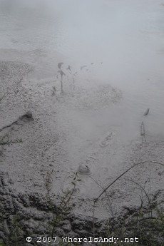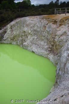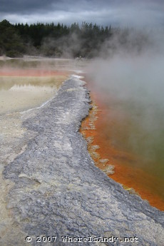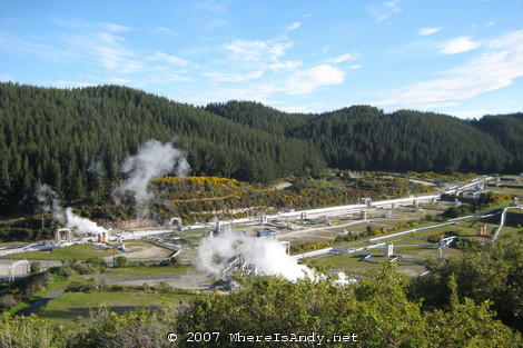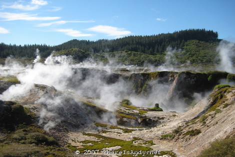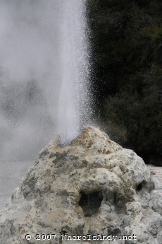 The remainder of trip was spent around the geothermal hot spots of Lake Taupo and Rotarua. This really was quite bizarre, seeing the different fumeroles, bubbling mud pools, spewing giesers and vibrant colours generated from the minerals forced up through the earths crust. Of further interest was a massive Geothermal power station (renewable energy generation was of great interest to me at school) and a waterfall which, although only drops 10 metres or so, was impressive for the volumes of water gushing through it.