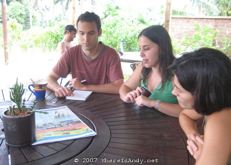 Probably the best accommodation we’ve stayed in during our whole year trip. There have been others that come close, such as Riverside Guest House in Thailand, but for completeness, Amanda’s Are Mango has it. Large, cool comfortable rooms, clean modern facilities, dvd room (with a decent collection – very rare in my traveling experience), free use of bikes, free use of snorkel gear, cheap kayak hire, beautiful beach 30 seconds away, comfortable sofas in communal area, free local phone calls, 1 for 1 book exchange, hammocks hanging in the garden, complimentary tea, coffee and fruit. Better than all of that though is how welcome you are made to feel. This place truly felt like home, more so because we got on very well with many of the other guests. Just as well really, because of all the rain we spent a lot of time in the guest house rather than on the beach.