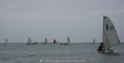 Come race day we listened to the briefing, pretending to understand all the yachtie speak. Soon after, the Vaca was rigged and out we went. First up Willy and I accompanied Amanda’s Dad for the morning’s racing. Amanda’s father was under no illusions that we could win with such an inexperienced crew but was hopeful that they wouldn’t repeat last years score of three capsizes!