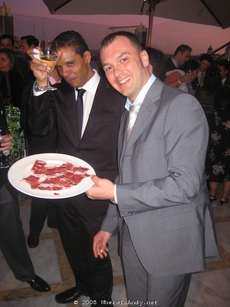 A beautiful city, Salamanca, you can’t get much more a prestigious spot for the wedding than the Catedral Nueva. Adding to the beauty of the place, Ana looked absolutely stunning in her wedding dress. The reception was, as all Spanish weddings are, fantastic. We started off with the apperitivo of tapas and beers on the terrace overlooking the city with loads of great bites, much in demand though was the Jamon Serrano of which between all the guests we devoured a whole leg within about 45 minutes. Such was the demand that the poor chap was not able to cut the ham quick enough as people were perpetually picking at it / taking plates away.