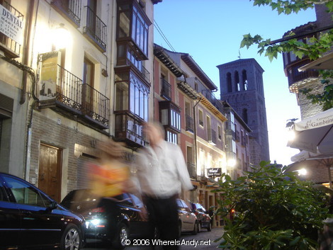 Before this however we stopped for an evening meal. Ignoring tips from our guidebook, we selected a reasonable looking restaurant with a traditional looking menu. Unfortunately this turned out to be the low light of the day. The combination of warm beer, undercooked chips, bland food, staff who took away the starter before we’d finished left us pretty annoyed. The meal was no better than your average workers cafe 7 Euro menu del dia, but four times more expensive. The only good thing that came about that meal was this pic: