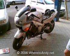 VFR800… with the V as in Valencia…. next thing to check though is whether to adjust the chain on his center or his sidestand… spring makes a difference.. 🙂