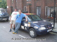 Having been forced to take BA instead of Easyjet, the only flight out of Krakow left on the Friday morning, effectively giving me the day off. By pure coincidence landing at Gatwick at 13:20 I arrived 5 minutes after Alberto of the Spanish Bullfighters. We met up and took the Gatwick Express into London running over a lot of the final details for the 2006 Mongol Rally Launch that was due to start the following day. We then made our way onto Kings Cross to meet up with Alberto’s team mate, David, who had driven the car up from Spain with a friend of theirs. With the car fully prepped and looking good we grabbed a proper steak pie in the local pub. Good to see the Spaniards liked English grub.