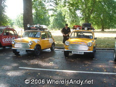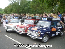 5 hours sleep was as good as it gets as we had to be in Hyde Park for 9am. Jon and I had volunteered to be part of the registration team for the rally. Now this turned out to be a monumental event: Over a kilometre of cars lined up for the launch with thousands of well wishers. There was the usual collection of Fiat Pandas and Suzuki SJs in various states of preparation, about 9 minis (what have I started?) and some real gems such as a hurse and a chap taking a Honda C90… full kudos points!