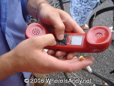 I just about managed to see off the mongolminis, who looked seriously cool in red, white and blue. It was quite strange watching the teams leave and seeing the expressions on their faces. I know that feeling from last year… “So it’s really happening. What are we letting ourselves in for?” Things calmed down by about 3 and all the marshals were able to relax. Much like last night, several faces from last year turned up, including Ian from team wrongolia and of course Luke from MyBlackBoxRocks. I must say it was great to see Luke again. As cool / eccentric as ever with his newly made mobile phone (in the body of an old house phone) and his recently restored bakers bike. That boy has real talent.