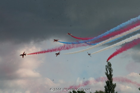 The airshow itself was a real spectacle. The immense new Airbus A380 looked gracefully like a whale slowly flying about, surely on the point of stalling. This followed by numerous fighter jets doing ludicrous maneuvers (accompanied by an amazing collection of sounds) which seem to defy the laws of physics. Best of all, however, was the finale with the red arrows. Impressive stuff!